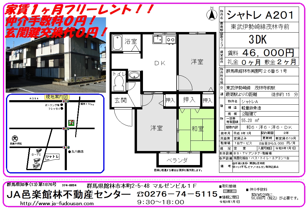 家賃キャンペーン実施中!!家賃1ヶ月フリーレント!!コンビニ・フレッセイ・美園小近く!! 広々3DKタイプ! |